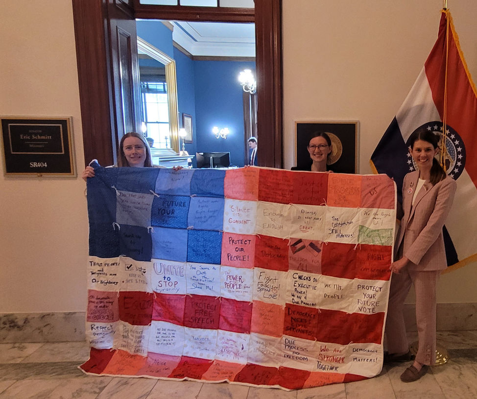 Here are photos of the delivery of quilts to lawmakers, organized alphabetically by state. For a comprehensive list of all quilts, their status, and additional photos, please see this google sheet.